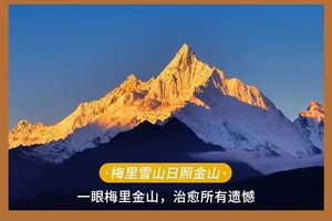 06:30 早晨起早欣赏【梅里雪山日照金山】,金光映照下的卡瓦格博、缅茨姆光芒万丈、美不胜收,大家可以前往明珠拉卡观景台,朝圣梅里雪山。